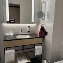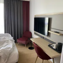A nice hotel near Bahnhof of Karlsruhe, the rooms are nice and clean, you have everything you need in your room, complimentary water waits in the room. You have a kettle to make coffee and tea. The bathroom was clean as well, the shower was spacious. The bed was clean including pillows and mattress. Pillow and blanket were thick and cozy to sleep on.