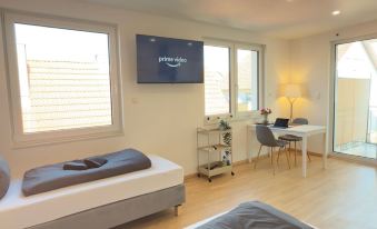 L'aeroporto più vicino è Aeroporto di Karlsruhe-Baden-Baden, che dista 47,2 km dall'hotel, in macchina circa 45 min..Come arrivo dall'aeroporto più vicino a Balkonliebe Karlsruhe - washing machine, underfloor heating, parking space?