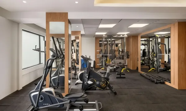 The room is very spacious, but the gym equipment is not in good working condition. As for the bathroom, I would like to point out that the towels are quite rough in texture.