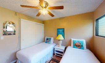 This condo is perfect for a large family as it offers two spacious bedrooms. There is a full-size and well-equipped kitchen plus a wet bar with an additional fridge on the other side. The large living area and dining room table accommodate the entire group comfortably. A sofa bed is in the living room for added sleeping arrangements.