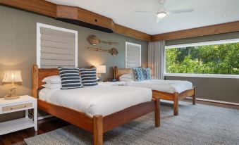 The newly remodeled dual master suite offer breathtaking ocean views. They both include a king-size bed equipped with a large walk-in closet and flat screen TV for ultimate relaxation as well as blackout curtains. Wander into the master bath for a mesmerizing soak in the large marble tub. Guests can also enjoy a separate shower, a private lavatory and double vanity counter with stunning marble countertops.