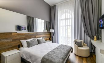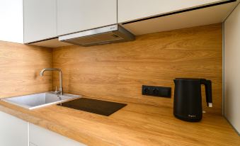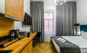 All hotel rooms are equipped with kitchens with household appliances and a necessary set of dishes. Each room has comfortable beds, a dining table, a cozy work area, a telephone, LED-TV, high-speed Internet, individual climate control, and a convenient storage system. The Standard room is ideal for 1-2 guests. The interior is decorated in bright colors with bright accents that add sophistication to the interior. The furniture is custom-made and every element is thought out to the smallest detail. The Comfort rooms have everything you need for a comfortable stay, a comfortable large bed, a kitchenette with household appliances and dishes, a TV and free Wi-Fi. The work area. The private bathroom comes with a shower, hairdryer and toiletries. The Business Room is an ideal place for relaxation and inspiration, where comfort and style harmoniously intertwine. The Business Room can comfortably accommodate 3 guests. The spacious room is filled with natural light, and stylish furniture and exquisite interior details add a touch of sophistication, making every moment in this space special. A Suite is a space where every element is created for your maximum comfort and serenity. The maximum room capacity is 4 guests. The stylish room, decorated in a minimalist design, combines elegance and functionality. Natural wood elements in the interior add warmth and harmony, and large windows fill the space with light, providing a sense of lightness.