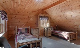 A private, wooded and secluded log cabin that is furnished with native rustic decor, turn-key and affordable to the ambitious traveler. The cabin is located near the town of Bellaire and is just 5-minutes from SHANTY CREEK RESORTS. The area offers some of the finest skiing, snowboarding, snowmobile trails, hiking, hunting, golfing, boating and fishing in the State of Michigan. The area is close to Traverse City, Sleeping Bear Dunes, and Mackinac Island as well as many other local attractions. SHANTY CREEK RESORTS offers something for everyone and can be a year-round destination. Many amenities are provided to offer you a wonderful vacation experience. Special note to golfers: There are nine regulation golf courses within 5 miles and others are within 20 minutes. The cabin is also provided with central heating & air conditioning. *Professionally cleaned & sanitized prior to each and every guest. You will also have pool and hot tub access at the Lakeview Hotel and Schuss Mountain.About pets:Pets allowed: dogs less than 50 lbs per pet (limit 2 pets total).About checkOut:Check out before 10:00 AM.About children:Children allowed: ages 0-17.About checkIn:Check in after 4:00 PM.About smoking:Smoking is not permitted.About minBookingAge:Minimum age to rent: 25.About events:No events allowed.