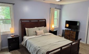 Unwind in Kennesaw at this lovely townhome. With 2 queen beds spread across 2 bedrooms with attached ensuites each featuring its own bathtub. Guests will have plenty of space to relax and refresh. Enjoy the convenience of WiFi, AC, onsite washer/dryer, iron, and heating during your stay. Enjoy privacy and quiet with a fenced in back yard.We look forward to welcoming you to our place.About pets:No pets allowed.About checkOut:Check out before 11:00 AM.About children:Children allowed: ages 3-17.About checkIn:Check in after 3:30 PM.About smoking:Smoking is not permitted.About minBookingAge:Minimum age to rent: 18.About events:No events allowed.