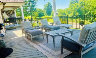 Outside, sip your morning coffee to the sound of fountains on the shaded front porch, unwind on the spacious back deck, or stargaze by the crackling fire pit. The setting is peaceful, and the pace is slow—just the way a country escape should be.