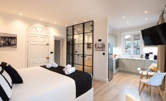 Questo complesso di appartamenti con stile personalizzato vanta una cucina con un frigorifero con congelatore e un forno. Il letto è dotato di materasso Tempur-Pedic e copriletto in piuma. È presente, inoltre, un divano letto singolo. In camera potrai usufruire di il Wi-Fi gratuito e di una TV a schermo piatto. A tua disposizione avrai anche un kit per la preparazione di caffè/tè e una lavatrice.