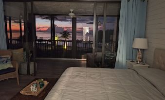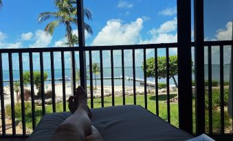 Enjoy breathtaking sunset views at this Key Largo condo located in the exclusive Rock Harbor Club at the Harbor House. This 2nd floor unit offers the convenience of single level living with easy elevator access. This beautiful property features 1 bedroom with a king bed, one and a half baths, and an additional oversized open living space with a sofa bed. The living area has a 65" flat screen tv to enjoy your favorite shows and a 55" tv in the bedroom. The coastal decor is warm and inviting bringing you the feel of the beautiful Florida Keys in every room. The view of the water is unobstructed from the living room, kitchen, dining and bedroom area allowing you to enjoy the sunset from every room. You will feel like you are in your own private oasis overlooking the sandy beach lined with palm trees as you look out into the sunset from your own huge private screened balcony. The balcony runs across the entire back of the bedroom and the entire back of the living room area and is approx 35ft wide.