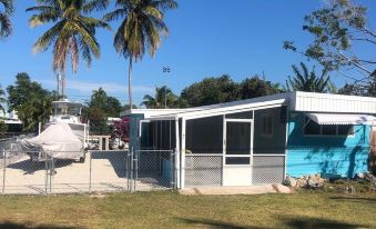 There is an outdoor shower and fish cutting /cleaning station, barbecue.