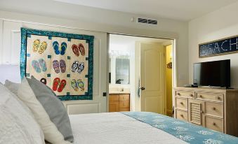 We have stayed in four different units at Sugar Beach Resort and this one was the nicest! The owner has a flip-flop theme with tasteful decorations and comfortable furnishings! The king bed was awesome, the kitchen extremely well stocked with cooking supplies, and separate lounge chairs and big screen TV were the icing.