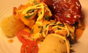 We went looking for an eat-in restaurant for dinner. There are plenty if take aways but the only restaurant listed on Google maps was closed. After exploring we were resigned to asking a pub landlord if we could bring a take away in. Then we spotted this one small hanging sign for Paul Arthur's Restaurant and Rooms. What a bit of luck, excellent food and really friendly service. Only moan would be the chairs are wooden and hard. They have a marketing problem. The're not on Google maps and if you search TripAdvisor for restaurants they don't come up as they are listed as a b&b.