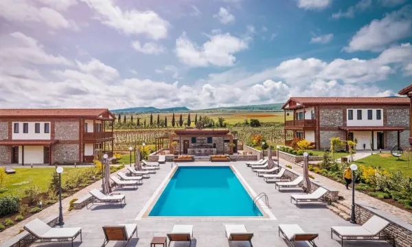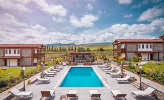 We loved staying here. Stunning setting with views to the caucasus mountains in one direction and vineyards all around. Clean, comfortable and smart but not pretentious. The on-site restaurant and wine tasting were great. Children were welcomed and there is a lovely big pool to enjoy. Only 23 rooms so doesn’t feel too busy and also well away from the main road