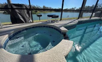 Two large family room areas and open kitchen lead out onto a large pool deck looking out onto the peaceful lake where you can watch nature at its best and sometimes being able to catch a rocket launch from Cape Canaveral. This large pool and spa comes with optional pool heating (contact us for a price) which we do recommend for stays between October and April. If you love to grill then this home has got you covered with a large bbq grill again overlooking the lake area.