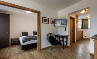 La struttura è in una buona posizione, sicuramente più rumorosa di un normale alloggio montano, ma nel nostro caso la camera era sul retro e quindi non dava alcun fastidio. Appartamento molto grande (la nostra era una suite al piano terra) e con tutto quello che serve. Comodo cucinino e bel giardino ben tenuto. Bagno spazioso con vasca. Unico neo è stata la pulizia. In generale non buona, sicuramente disastrosa sotto il divano e i letti (palesemente non eseguita da diverso tempo). In ogni caso non appena avvisata la struttura della cosa, entro 12 ore si sono presentati ed hanno eseguito la pulizia più approfondita. Anche questo è un plus
