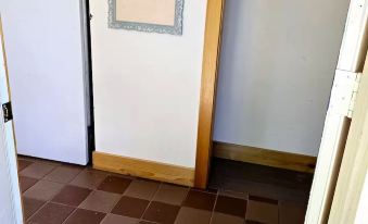 Park in front of the detached shop and follow the concrete pathway to the door. A keypad lock is installed for contactless check-in.