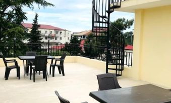 Отличный отель в самом центре Кобулети. Чистые номера, просторная кухня для самостоятельной готовки и очень доброжелательные хозяева отеля! Удобное расположение - близко магазины, кафе и набережная, при этом очень тихо вечерами и не слышно музыки из кафе на побережье. В холодное время года этот отель подойдет идеально, так как в номерах и общих зонах установлены батареи, что большая редкость для Кобулети (в большинстве отелей греют кондиционером, что совсем не спасает зимой). Проживание тут оставило лишь положительные впечатления!