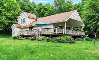 Immerse yourself in the nature of the Catskills at this pet-friendly lakefront retreat. Nestled among the trees, the property offers: