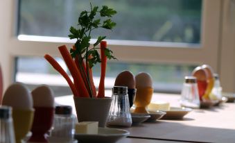 Scopri le specialità di Masurische Schweiz, un ristorante che vanta una bella vista sul giardino e tavoli all'aperto. Volendo, puoi anche stare nel tuo alloggio e richiedere il servizio in camera con orario limitato. La colazione a buffet è disponibile a pagamento tutti i giorni dalle ore 09:00 alle ore 10:00.