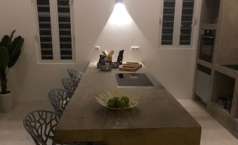 Very nice property. Well equipped kitchen with everything you need for own cooking. The newest Nespresso machine including cups! Awesome. Refrigerator with ice and water dispenser. We enjoyed large swimming pool. You can swim laps in it. It is shared among 6 houses, but only one other house was occupied at the time of our stay, so practically we had the pool to our self's.Location - very close to airport. You can walk if you have to.Air-condition was in every room - including living room.Communication with owner was perfect. Melanie answers within minutes. Highly recommended place.