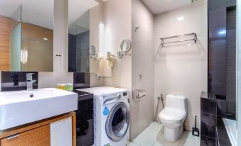 Deluxe One-Bedroom Apartment With Washer (1 Queen Bed/ 2 Singles Bed)