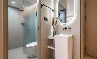 As a flower-themed hotel, it provides a business-oriented and comfortable accommodation experience. Stepping into the hotel, the stylish room design is a delightful surprise. The serene and soothing atmosphere, combined with ample natural light, instantly relieves travel fatigue. The excellent sound insulation guarantees a quiet space for rest. Each room is equipped with whole-house voice control and electric curtains—you can adjust them effortlessly with just a voice command. The unique lighting creates a romantic and warm living environment. Additionally, the bathrooms feature dry-wet separation, and the thoughtful addition of smart toilets further enhances the quality and comfort of your stay.