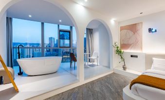 Santorini Scenic Double Bed Room (Panoramic Floor-to-Ceiling Window, Deluxe Bathtub, 100-Inch Projection)