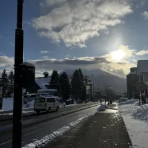 The hotel is very close to the Grand HIRAFU base (5 mins walk), but doesn’t have a direct access to the slopes. The staff was extremely nice and spoke English. Our highlights were the onsen and fireplace in the common area after a thrilling day of powder. We liked the breakfast, good diversity and fresh items every morning. The yogurt was amazing! This place has an old chalet charm, so the rooms won’t be the most up to date and the wifi is hard to get. We would recommend for an authentic atmosphere close to the slopes and reasonably priced :). The first picture is from our room, mount Yotei was being shy but on a clear day that would be quite a view!!
