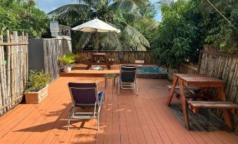 The property was very nice and lush. Fruit trees and coconut trees all around. I love the little dipping pool to cool off while sitting on the back deck. Our hosts have always been responsive and we stayed at another of their properties before. That's why we came back to try them again. Will likely be back again
