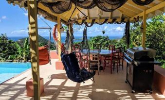 Now Covid 19 certified, Black Pearl is perched on top of Vieux Sucre. This very Private Villa overlooks Pigeon Island and Rodney Bay Marina. Black Pearl is truly a piece of paradise where privacy, peace and tranquility are interrupted only by bird songs. It has the atmosphere of a true home. Warm and cosy, with a unique style and character. You have the feeling of being away from everything. It is calm, peaceful and so relaxing, even though you are just 7 minutes drive away from Rodney Bay. After living in the region for many years, I (with my architectural background) decided to design a home where all the benefits of the Caribbean life can be enjoyed. The Sea, the Sun, and the Nature… at Black Pearl Estate you feel the presence of these three elements around you at all times. With this open-style Villa, you have breath taking views of the Sea and neighboring islands. Almost every day, the Sun is shining and the Nature is all around you. The house is surrounded by a lush tropical vegetation with many flowers and fruit trees such as lime, mangoes, avocados, golden apples, guavas, coconuts, sugar canes, bananas, breadfruits, pawpaws, local plums and more. We also like to grow our own herbs and vegetables. Staying in this environment gives you a real feeling of being away from everything, yet you are just 7 minutes´ drive from Rodney Bay. We do recommend a vehicle and as we are on top of a hill, access will be more comfortable with a 4x4 or AWD vehicle. We look forward to welcoming you! Bruno & Sylvia The house including the pool is fully yours during your stay at Black Pearl Estate We are Sylvia and Bruno, the owners and your hosts. We live close by and are here to help you feel at home. We will welcome you upon your arrival and will be available whenever necessary to help you with your plans as you wish. Sylvia is St Lucian and Bruno is from France, having first moved to the Caribbean 35 years ago. We both have a wealth of knowledge about the area and we wish to ensure your stay in our beautiful St Lucia is a memorable one. What is unique with Black Pearl Estate is that you have a feeling to be away from everything. It is calm, peaceful and relaxing but you are in fact only 7 minutes away from Rodney Bay where all what you may need. Beach, bars, restaurant, casino, marina, supermarkets, shopping malls, banks and more Because it is on top of a hill, the access will be much more comfortable with a AWD or 4X4 vehicle. 3 bedrooms have air-conditioning. There is an exercise machine that you are freely to use. Free WIFI, 1 led TVAbout pets:Pets allowed: less than 20 lbs per pet (limit one pet total).About checkOut:Check out before 11:00 AM.About children:Children allowed: ages 0-17.About checkIn:Check in after 3:00 PM.About smoking:Smoking allowed: in designated areas.About minBookingAge:Minimum age to rent: 20.About events:No events allowed.