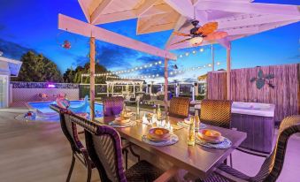 ☆☆Your own slice of paradise! Kick back by the pool, soak in the hot tub, chill out at the tiki lounge, or hang by the fire pit with your crew-this place is all about good vibes and great memories. There’s even an outdoor bed for those lazy stargazing nights and plenty of games to keep everyone entertained. When the sun goes down, the ambient lighting makes the whole space glow. With a guest house and enough space for up to 16 guests, this home is the ultimate getaway for friends and family!