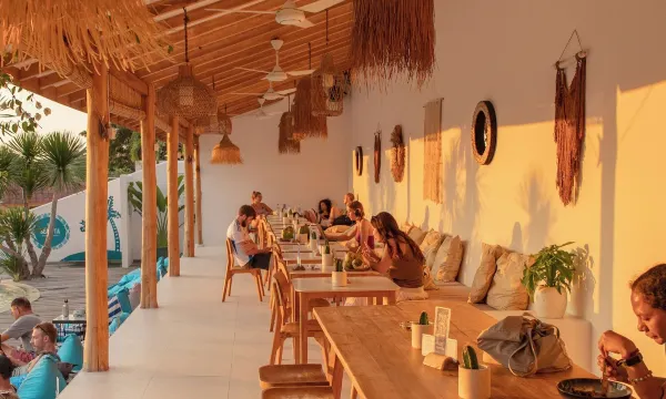 Fantastic atmosphere with easy 2 minute walk to town. Beautiful rooftop area and great music.