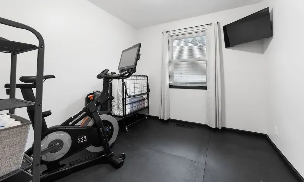 In total you'll find two full bedrooms and a third flex room, complete with workout equipment and a roll-away full bed.