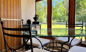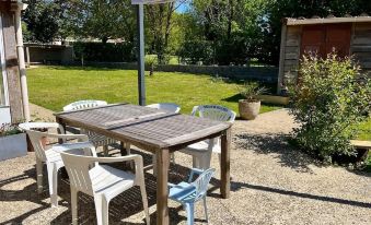 Nous avons profité de la maison qui selon la météo offre la possibilité de manger dans la véranda ou en terrasse ! Les enfants étaient en sécurité dans le grand jardin clos et notre petite chienne était ravie d'y gambader ! Les enfants étaient ravis de cueillir des mûres et d'aller chercher les œufs à la ferme juste en face ! Vacances reposantes