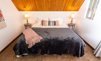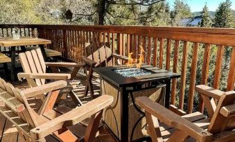 Relax in our newly decorated A-Frame cabin, where modern amenities will make your mountain getaway comfortable and entertaining. The breathtaking floor-to-ceiling windows, open floorplan and soaring cathedral ceilings create a spacious and peaceful light-filled living space, allowing you to slow down and reconnect with nature. The main level includes a living room, dining area, fully stocked modern kitchen, two bedrooms, bathroom and private outdoor deck. This setup makes it incredibly enjoyable for families to watch TV, read a book next to a roaring fire, or simply enjoy a tasty homecooked meal together.