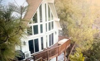Relax in our stunning tri-level luxury A-Frame cabin. An open floorplan, soaring two-story windows and outdoor decks reward you with breathtaking forest views, and a peekaboo lake view in Winter. A seasonal creek crosses our property, providing a relaxing spot for you among the trees. Hillside forest to hike and explore .Our secluded home is nestled in the North Bay neighborhood, just 5 minutes from restaurants & shops. A fun-filled game room is perfect for kids!