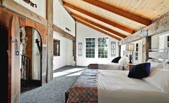 This home was constructed using old growth timber from the Fort Bragg bridges and the Potter Valley Lumber Mill with over 1,300 lineal feet of large timber mixed with patina sheet metal and 36 feet high ceilings. It features an arched bridge spanning over 20 feet across open air space to access the master bedroom. The home is sitting on a 7.5 acre land overlooking the Kelseyville valley. The home also offers a 40,000 gallons deep water swimming pool, hot tub, gas fire pit and a large bar.
