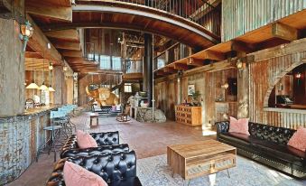 - over 3,700 sqft of space with giant wood posts and beams with patina metal walls