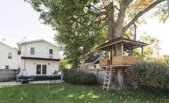 Enjoy this Beautiful Rustic Farmhouse in the heart of Downtown Lake Geneva. Close to everything Lake Geneva has to offer, 3 blocks from the DT restaurants and bars, and only 3 blocks from the lake. This 3,100 square foot house has a huge gourmet kitchen, inviting cocktail room, cozy family room with wood burning fireplace, and 4 unique charming bedrooms with 2 of them being, en-suite(full bathrooms). Outside offers a beautifully spacious front porch with couches, lights, candles, and a TV. The backyard offers a deck with chairs, a couch, 3 tables, a sprawling space, and a magical treehouse!About pets:No pets allowed.About children:Children allowed: ages 0-17.About smoking:Smoking is not permitted.About events:No events allowed.