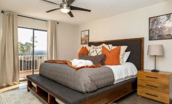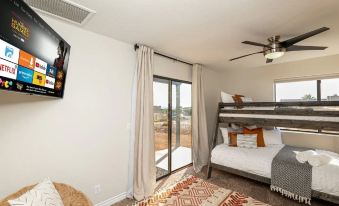 Bedroom 1: King bed +twin over full bunk bed + ensuite bathroom + patio access + Smart TV (downstairs)