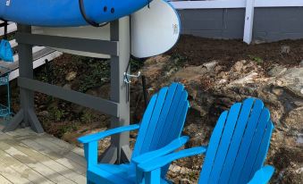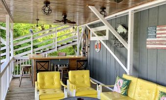 While mountain lakes are known for lots of steps, this property is easily accessible with just 8 steps from parking to the front door or a side yard ramp as well. From the house there are multiple ways to access the lake from the lower level as well as the upper level. We hope you are ready for some water activities on your vacation. The house comes with a 22 ft. pontoon boat, 2 standup paddleboards, and a slew of floating chairs and aqua toys. While at the waters edge this house has what Lake Lure is known for the classic jump off boat house and this one will not disappoint with its 12 foot decent into the water. After enjoying the lakes amenities there is a nice hot/cold outdoor shower to rinse off and recap the days adventures!