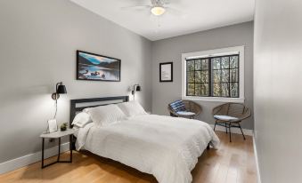 The house was designed with adventure seeking travelers in mind. On the first floor guests have access to two queen bedrooms and two full bathrooms. A new second floor bedroom with a king size bed is a welcome expansion to accommodate larger groups. Our oversized family room is a perfect space to relax, read, watch some television on a big screen, or play a board game with the family! The full kitchen, with many upgraded amenities, stone countertops, gas range, and dishwasher, gives you the perfect space to cook or visit some of our favorite restaurants less than 15 minutes away. A large well-lit deck gives you a tranquil spot to sip your morning coffee and hopefully catch a peek at some woodland visitors. Our washer and dryer are neatly tucked away in the entryway and are essential for washing up after your many outdoor adventures.