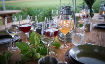 We were six adults and three dogs and we had a great visit. Lovely place, excellent staff, very good food. We have a few comments/suggestions where we think they can improve. We chose the fixed 4 course dinner with wine pairings. 1). Although notified that one of us was a vegetarian, they seemingly assumed she ate fish. This should never have happened. We chose not to make an issue of it and she unhappily ate the fish. 2) Is it really necessary to have to pay for additional bread. I know there is a cost involved, but seriously. This was especially felt as the two first courses cried out for bread to dip into the delicious sauces. Or at least a spoon would have been helpful. Yes, we could have asked for one. 3) The wines were excellent, however neither of the 2 whites were properly chilled and we all felt the pour was on the cheap side. Despite the above minority complaints, we loved the place and hope to return and can genuinely recommend it..
