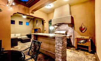 This fully-furnished Tuscan style home is perfect for weekend getaways or longterm stays. With a jacuzzi and expanded outdoor living space the Greek-style Villa offers the comfort of home with a vacation vibe. Stream Netflix in the vaulted living room, soak in the outdoor hot tub, or enjoy your morning coffee lounging on the patio couch. This stylish space can be the romantic escape you're seeking or accommodate your group of 8. All this only minutes from all Las Cruces has to offer.About pets:Pets allowed: dogs and cats (limit 4 total).About checkOut:Check out before 11:00 AM.About children:Children allowed: ages 0-17.About customRules:Do not put cleaners/chemicals of any kind in the jacuzzi. Don't mettle with jacuzzi chemical cartridges. If the jacuzzi is dirty contact the host..Please use the provided make-up removal wipes to remove make-up instead of towels.,No parties.About checkIn:Check in after 3:00 PM.About smoking:Smoking is not permitted.About minBookingAge:Minimum age to rent: 18.About events:No events allowed.
