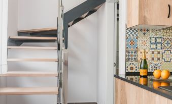 ++ Hôtel très moderne ! Entrée dans l’immeuble et la chambre par code. Comme sur les photos, chambre en mezzanine vraiment bien optimisée, lit très confortable, salle de bain propre, cuisine équipée avec tout ce qu’il faut ! Cafetière, micro-onde, lave vaisselle. Aussi accès à une machine à laver le linge dans l’immeuble. À 10min de la plage et 5min des bus, emplacement au calme dans une ruelle. Tout est très propre et soigné !