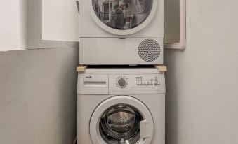 The apartment features a separate, fully equipped kitchen, including an oven, microwave, stove, coffee maker, toaster, and all the essentials you need to cook comfortably. From the kitchen, you have access to an independent laundry room with a washing machine.