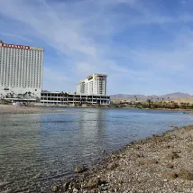라플린이라는 도시는 콜로라도 강을 끼고 있어, 우리가 묵었던 호텐 룸에서 일출과 강 뷰를 볼 수 있어서 기분이 좋았어요~ 강에서는 유람선을 탈 수 있고, 산책하기도 좋았어요.