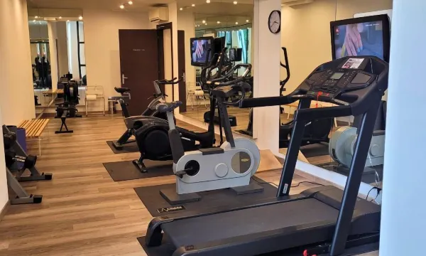 The swimming pool is very tiny and outside steam room is not in use. The room is small and soundproof is quite bad.