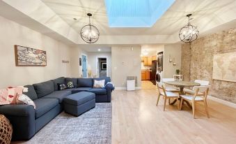 Whether you know it as Larryville, LFK, Jayhawk Nation or some other memorable spin- your adventures in Lawrence KS should always start on Mass Street. This 2 bed apartment sleeps 4-6 and is in the heart of downtown! Perfect for couples, families or small group- you can even book a quiet suite escape for one. Equipped with stylish, comfortable furnishings, in-suite laundry, and a fully equipped kitchen, you'll have everything you need. Plus, those gorgeous exposed brick and stone walls- you can’t get more “charming downtown loft” vibes than that!