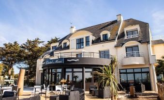 Bel emplacement et très bon accueil l' hotel est proche du bourg et bénéficie d'une salle de restauration face à la mer . Le petit déjeuner est de qualité avec des produits fris