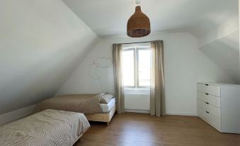 ★ A large bedroom with 2 single beds 90 x 200 cm and a comfy nook with an additional child mattress (90 x 140 cm). The single beds can be combined to form a double bed