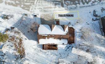 Trailer parking on lot with extra trailer parking within 2 blocks .